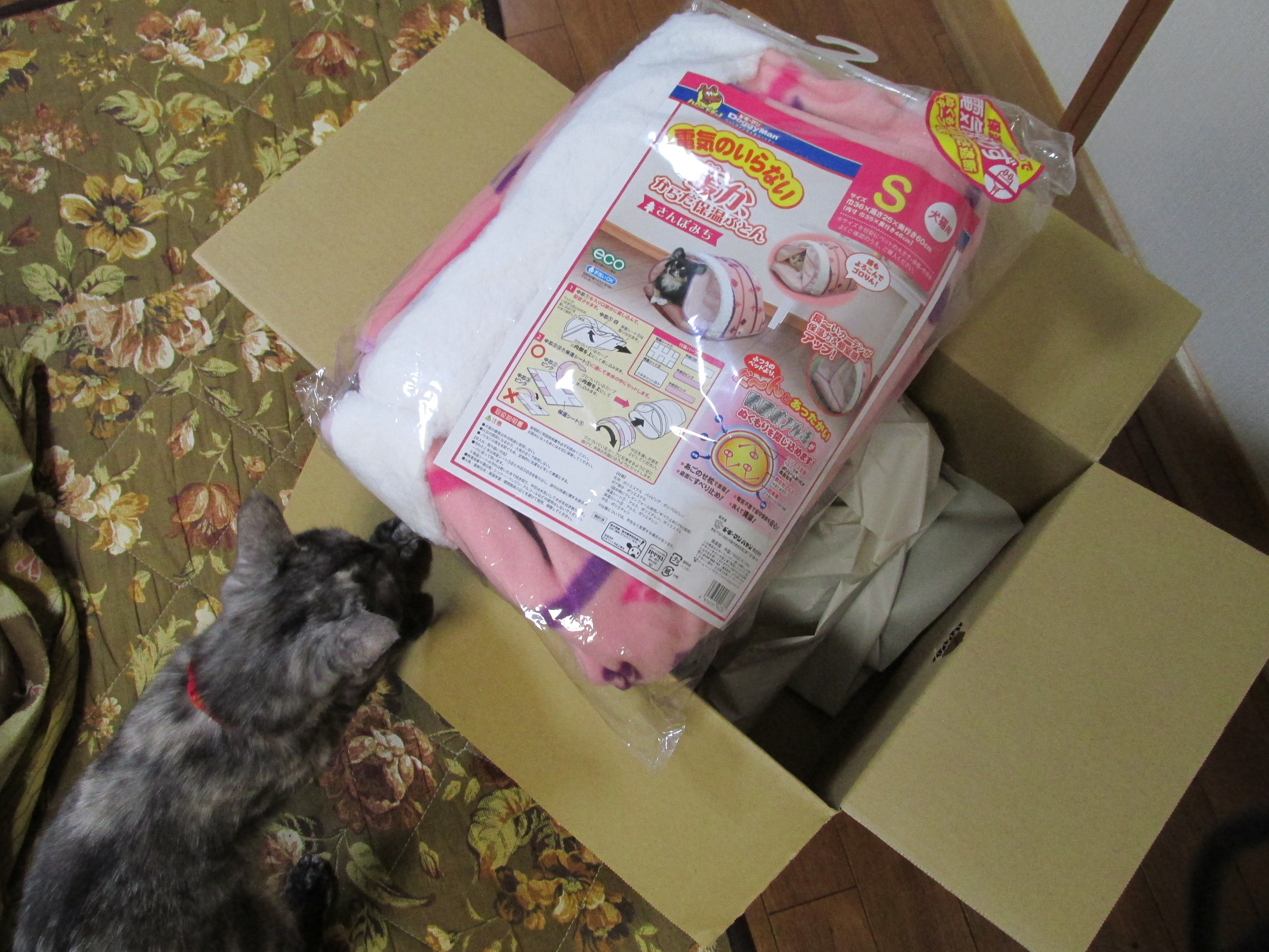今回の貢物は防寒対策として電気不要でぬっくぬくなペットベッドです。