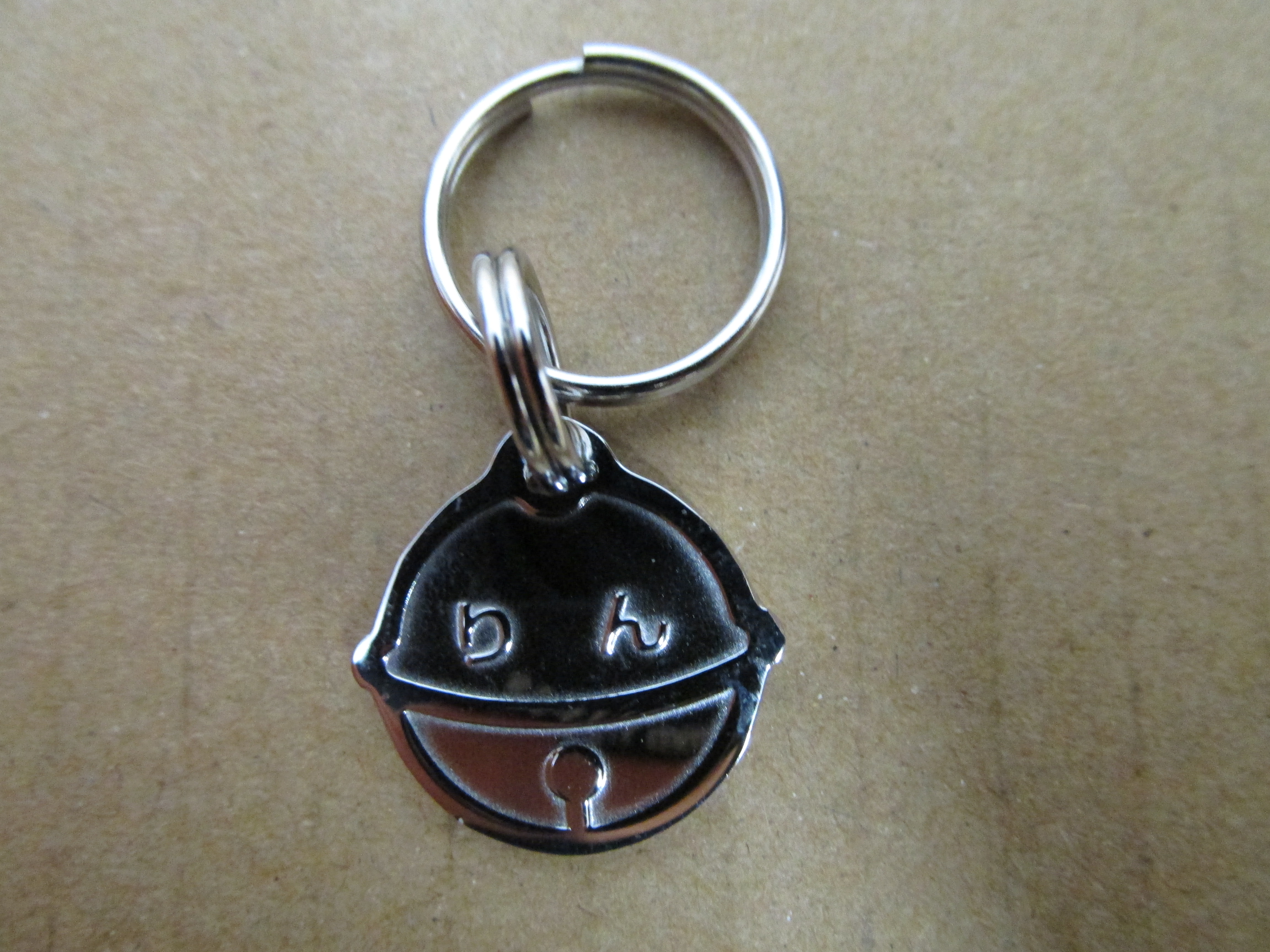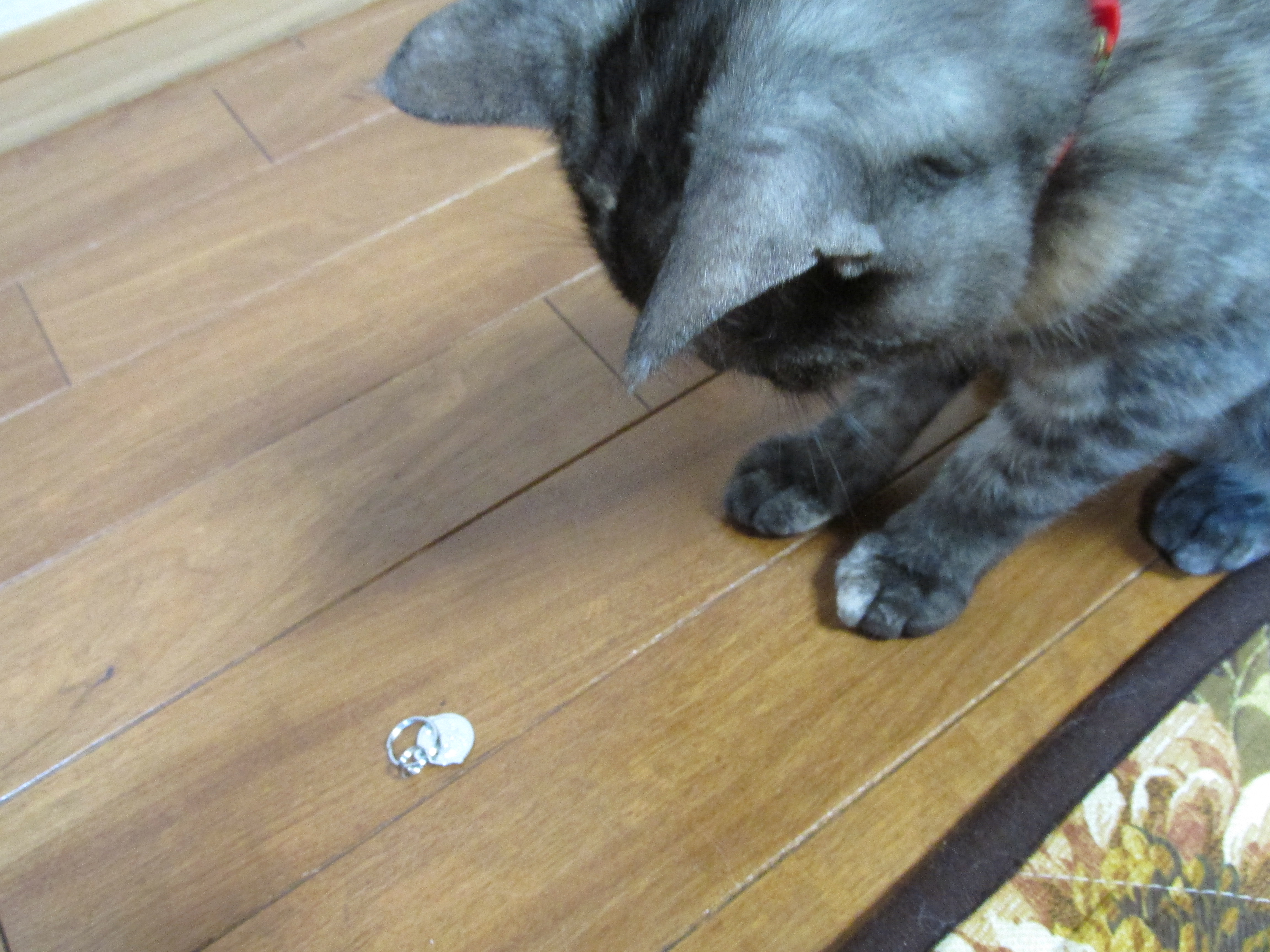 早速、首輪につけてみました。ステンレス製で軽いのでりんも気にならないようです。